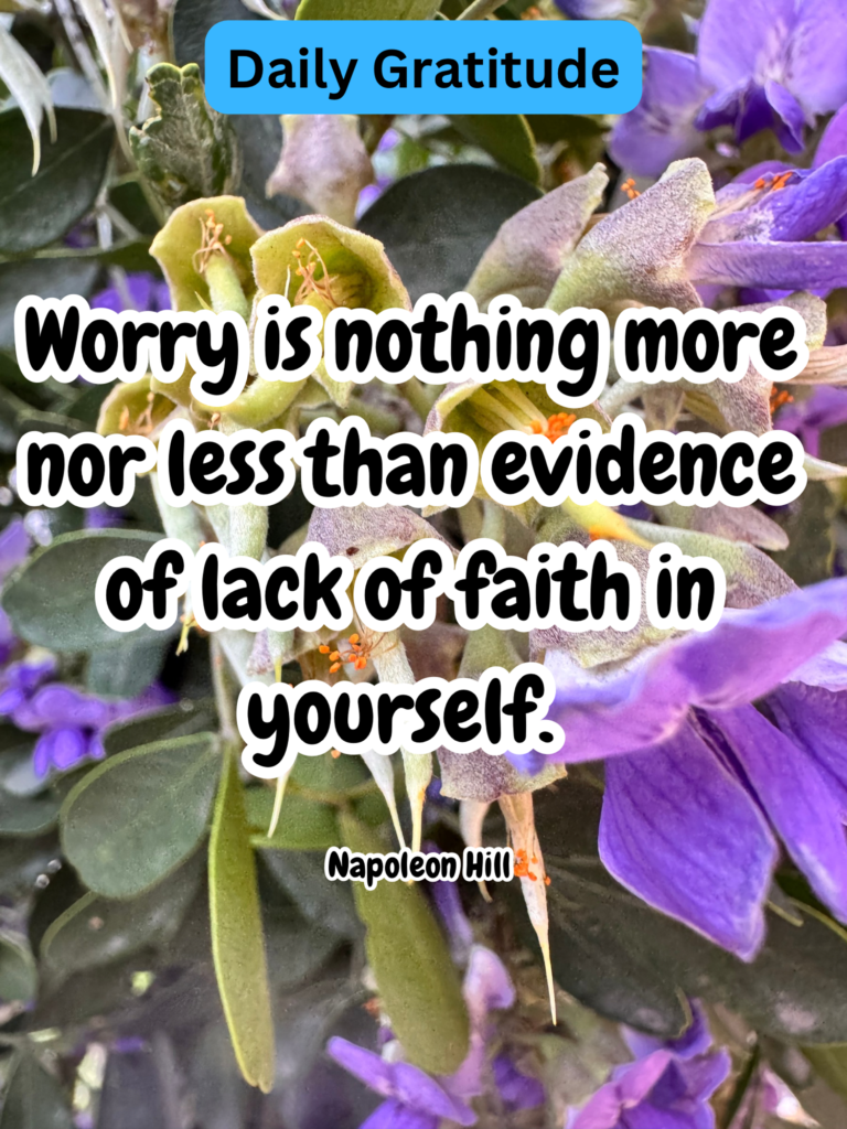 Daily Gratitude: You fear things are going to happen and you are afraid you are not big enough to cope with the situation when it arrives. So begins the cycle of fear. We just don’t like to admit we’re afraid so we say we’re worried.